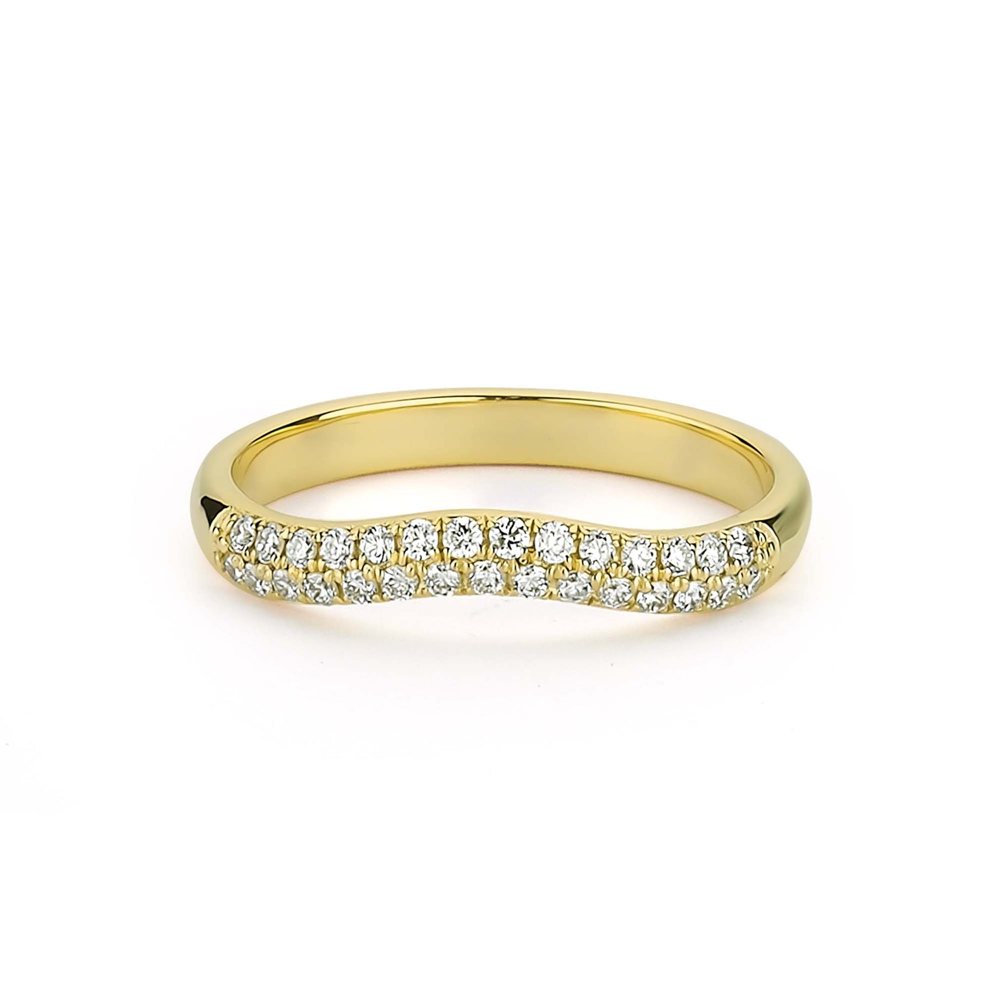 Refined and timeless, this band is crafted in solid 14K gold and features a soft wave design lined with natural pavé diamonds. Its subtle curve adds a modern touch, making it perfect for stacking or wearing as a delicate statement on its own.