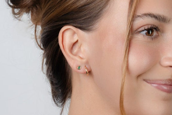 A sleek emerald bezel, cleanly set for minimalist layering. Vibrant, versatile, and essential for stacking